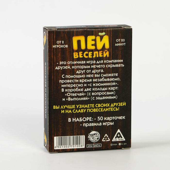 Купить игра для компании "пей веселей" 50 карт от 180 руб. с доставкой до пункта выдачи в Менделеевске. Интернет магазин ДекаМаркет. Оплата при получении.